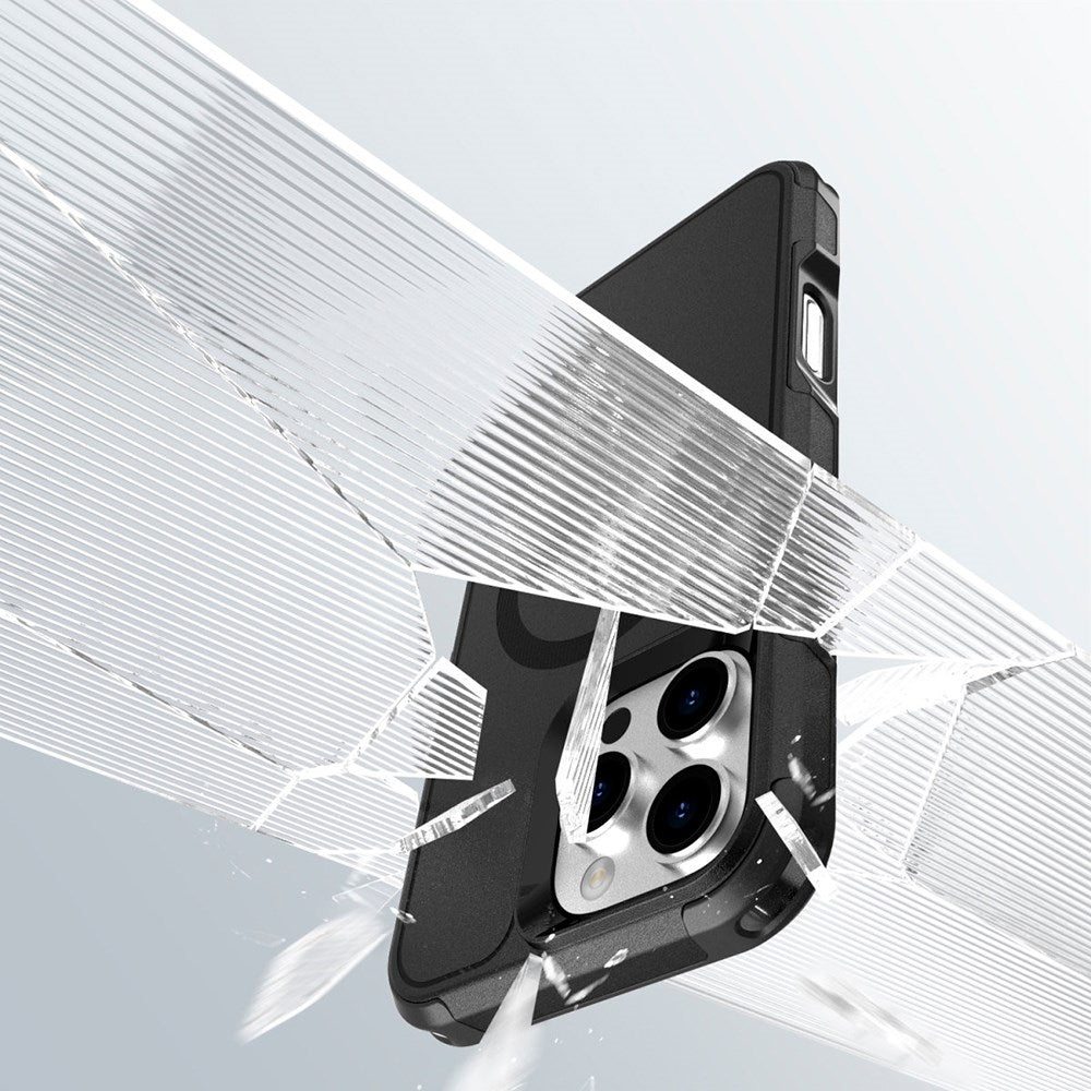 Du får en god beskyttelse til hele din telefon med dette håndværker cover som er todelt, coverets to dele er lavet af forskellige slags plastik. Den yderste skal er lavet i hårdt plastik, som giver en god og fast pasform og giver god beskyttelse. Det er også på denne del af coveret at MagSafe ringen sidder. Den inderste del er lavet i blødt og fleksibelt plastik, som er stærkt stødabsorberende.