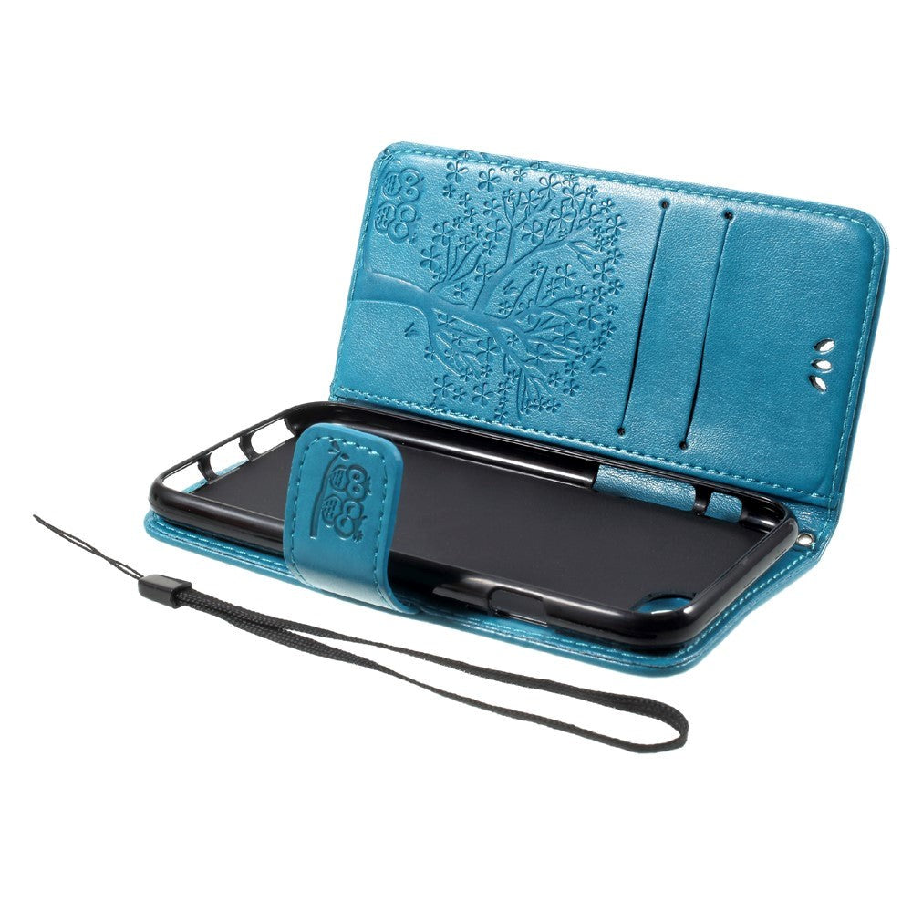 iPhone SE (2022 / 2020) / 8 / 7 Læder Cover Flip m. Pung - Ugler i Træ - Blå