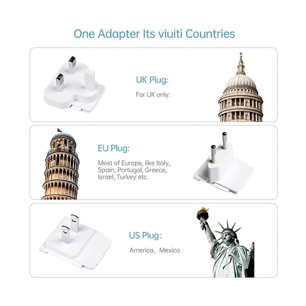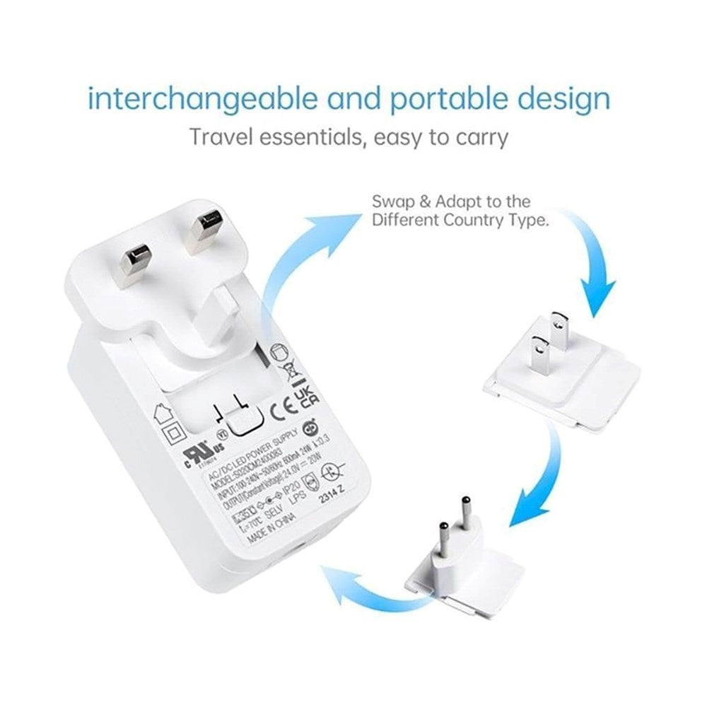 Denne strømforsyning leveres med flere forskellige plugs, så du kan bruge den i forskellige lande og regioner uden problemer: