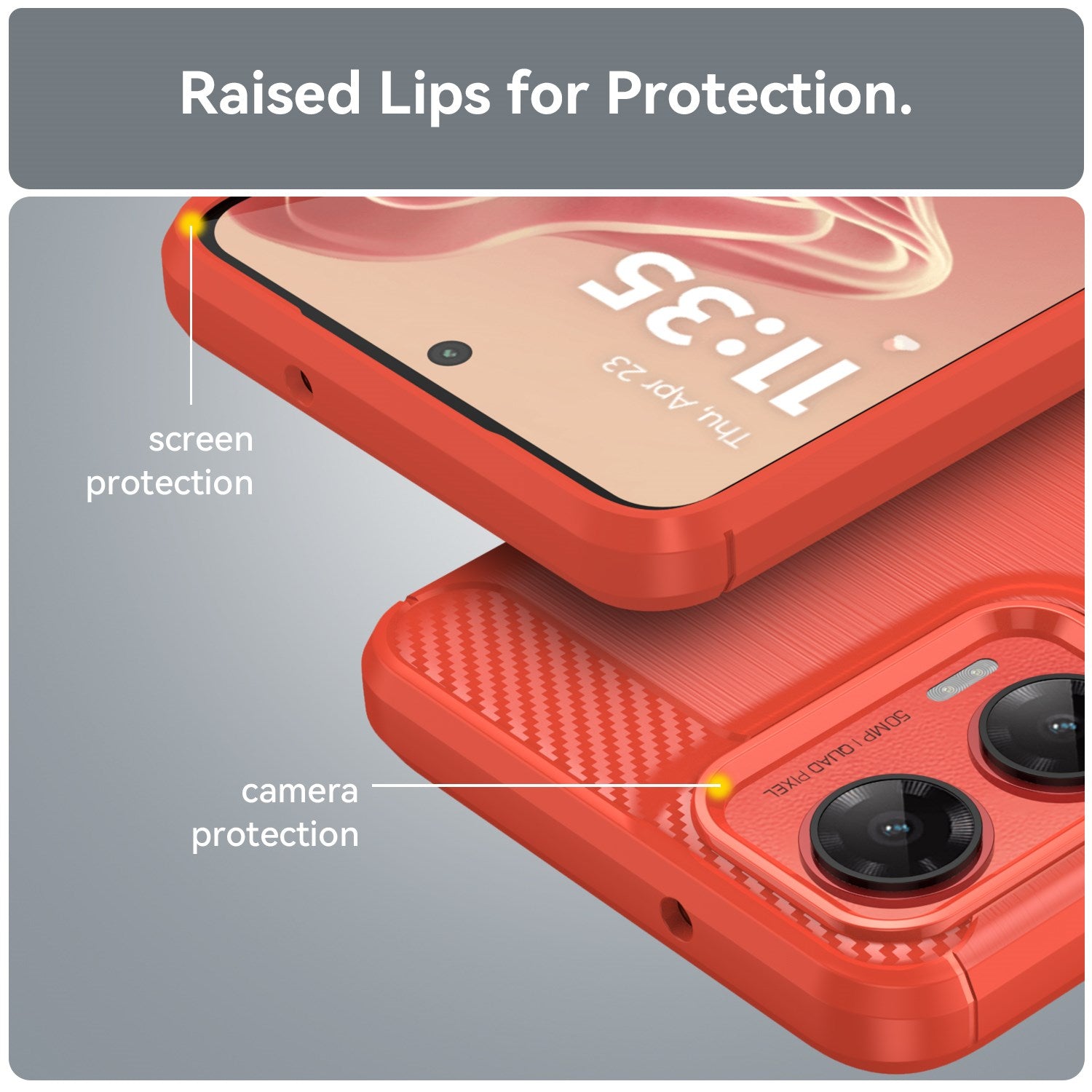 Coveret er både behageligt at holde ved, da den carbon-teksturerede overflade sammen med det bløde plastikmateriale giver et godt greb. Det giver dig en endnu bedre oplevelse, når du bruger din smartphone.