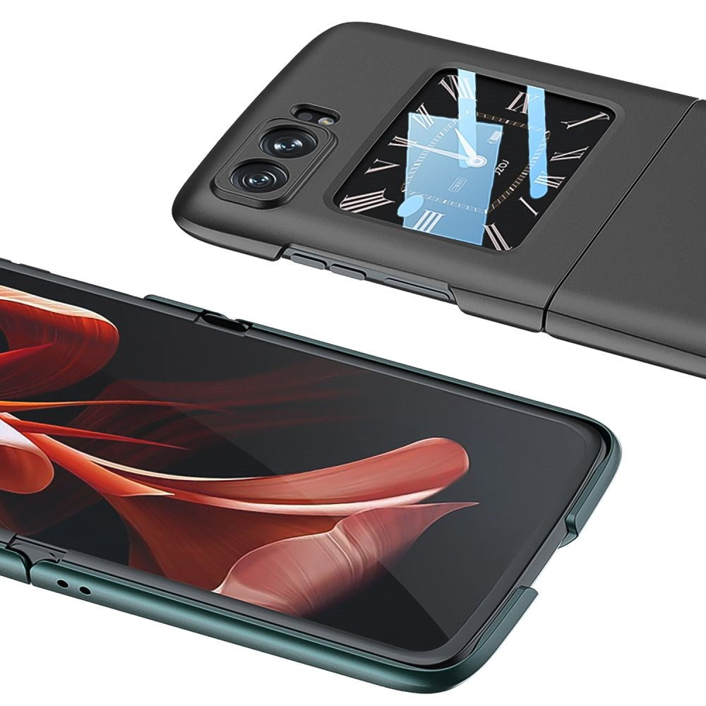 Der er sørget for at dette mobil cover passer perfekt til Motorola Razr 2022, coveret er nemlig todelt så din smartphone fortsat kan blive klappet sammen. Deruodver er der sørget for, at der er skærmbeskyttelse i hærdet glas foran den aktive skærm når din Motorola er klappet sammen.
