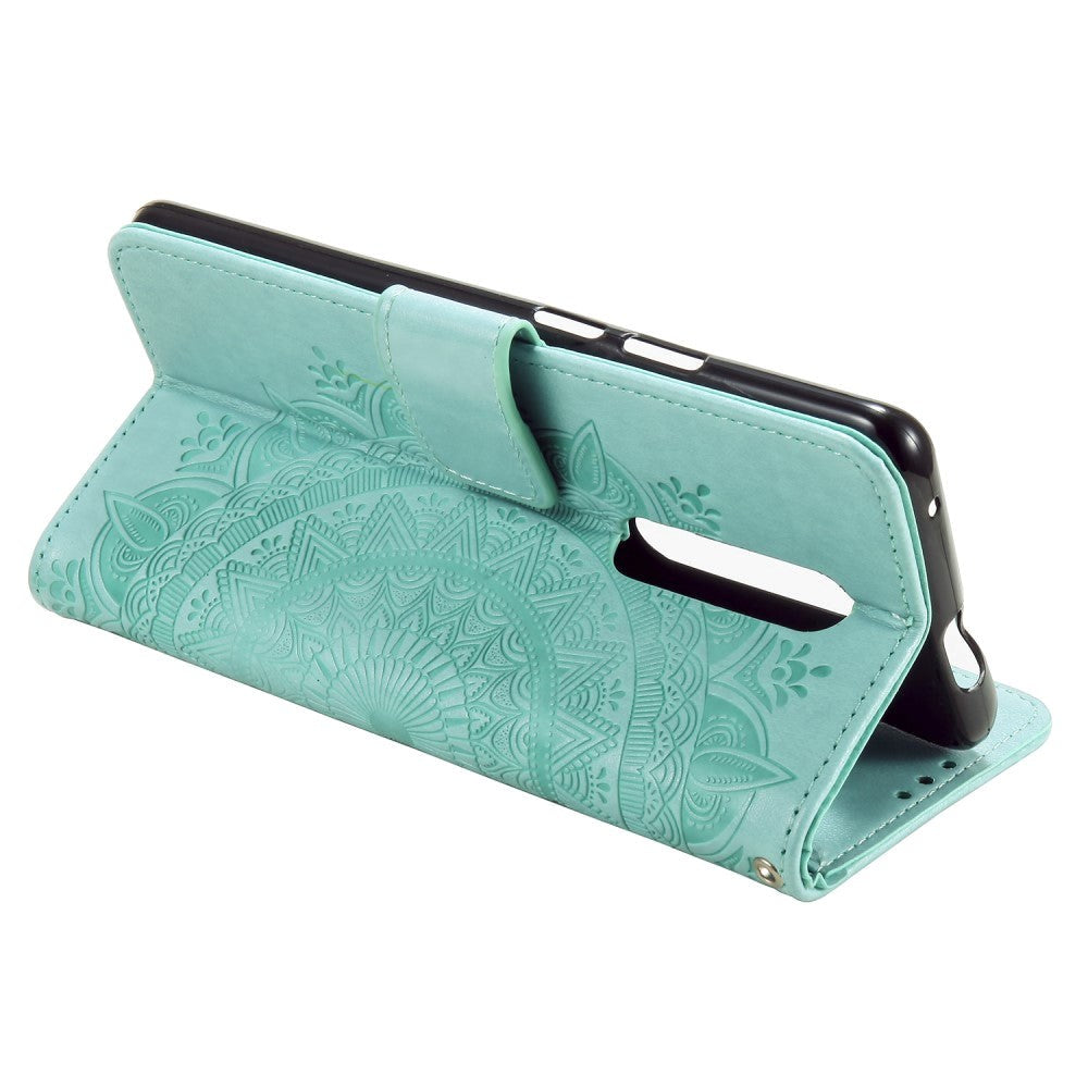 Nokia 2.4 Læder Flip Cover - Mandala Mønster Cyan
