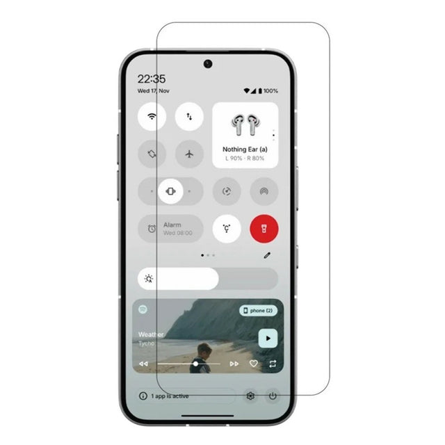 Dette hærdede beskyttelsesglas til Nothing Phone (3) giver din telefon en solid og pålidelig skærmforstærkning. Glasset er fremstillet i høj kvalitet, hvilket sikrer en tydelig og ren visning, så du fortsat kan nyde skærmens fulde skarphed og præcise touch-respons.