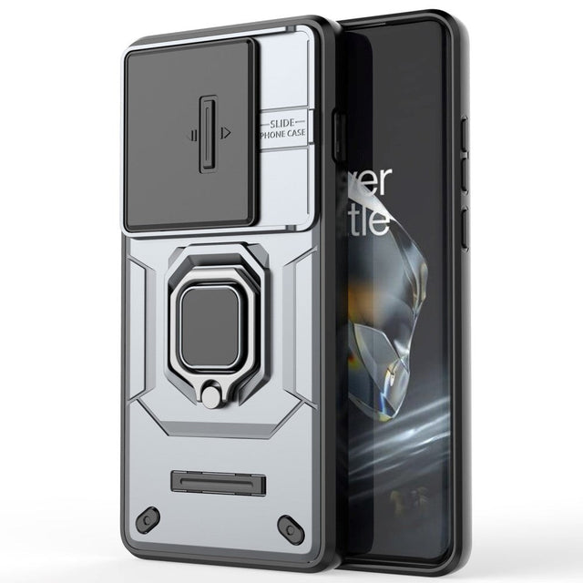 OnePlus 12 Håndværker Bagside Cover m. Magnetisk Kickstand & Cam Slider - Grå