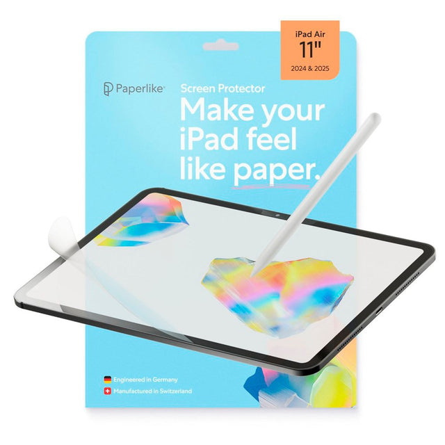 Optimer din iPad Air 11" (2025 / 2024) med denne Paperlike 3 Skærmbeskytter til en mere naturlig skrive- og tegneoplevelse. Den specialdesignede Nanodots-overflade giver autentisk papirfølelse, præcise streger og skarpe skitser uden at kompromittere skærmens klarhed.