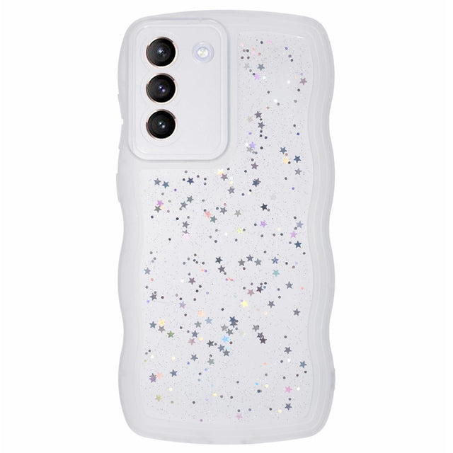 Beskyt din Samsung Galaxy S22+ (Plus) med dette EIDERWOOD Fleksible Wavy Cover, der kombinerer stil og funktion. Coveret er pyntet med små stykker glimmer.