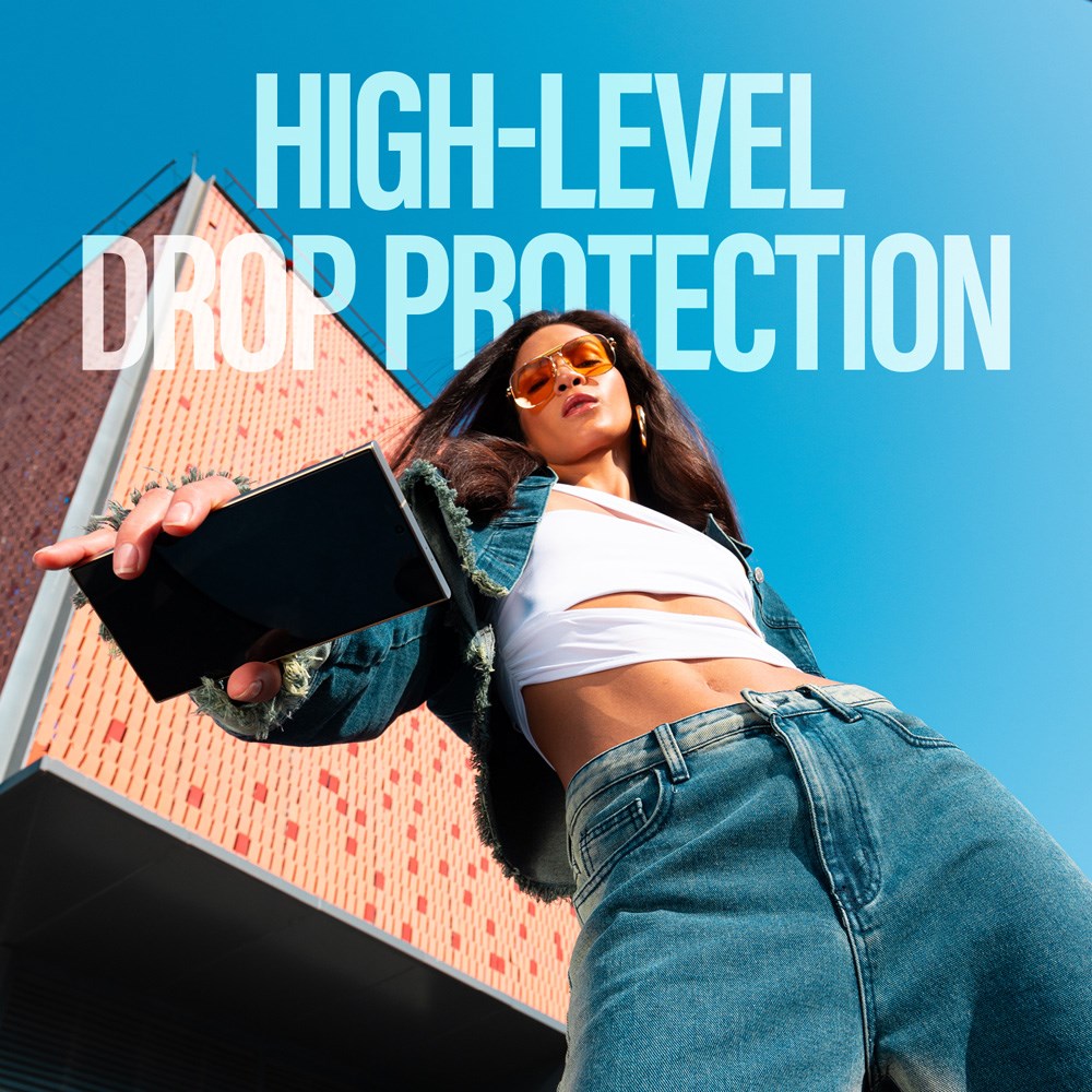 Med Ultra-Wide Fit designet dækker skærmbeskyttelsen hele skærmen, samtidig med at den efterlader plads langs kanterne, hvilket gør det muligt at kombinere det med et bagsidecover. Denne funktion giver dig mulighed for at opnå 360-graders beskyttelse af din enhed, når du tilføjer et cover sammen med skærmbeskytteren.