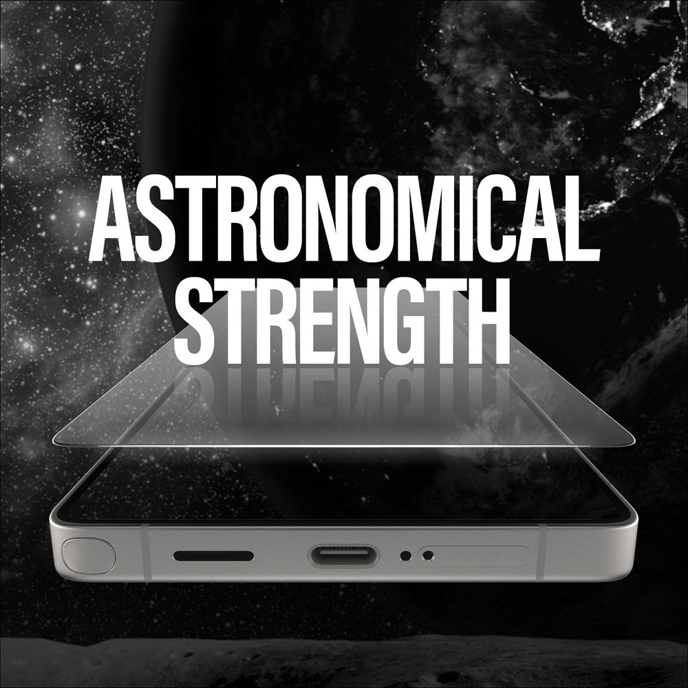 Beskyttelsen af din Samsung Galaxy S25 Ultra starter med PanzerGlass Ultra-Wide Fit Skærmbeskyttelsesglas, der både er effektiv og nemt at montere. Dette beskyttelsesglas er lavet af højkvalitets japansk keramisk glas, som er fem gange stærkere end almindeligt glas og beskytter mod ridser, stød, slag og revner.