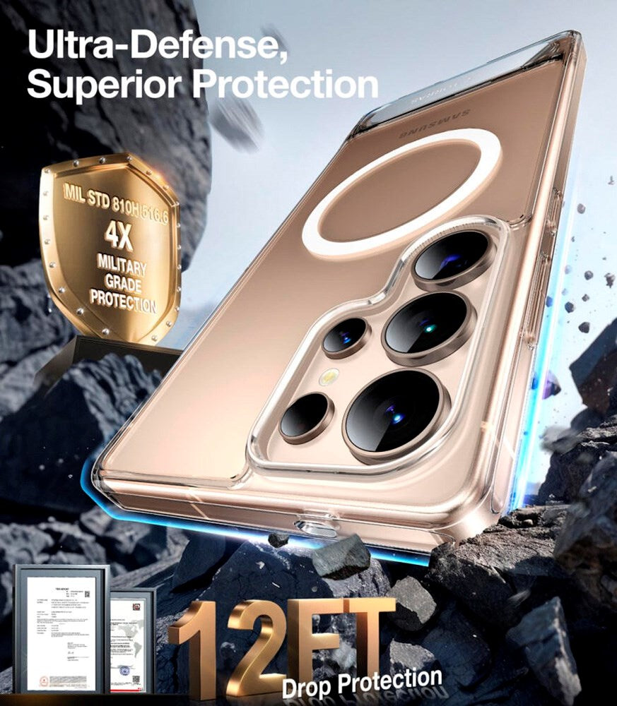 - Samsung Galaxy S25 Ultra - Hybrid Cover m. Ståfunktion - MagSafe Kompatibel - Gennemsigtig