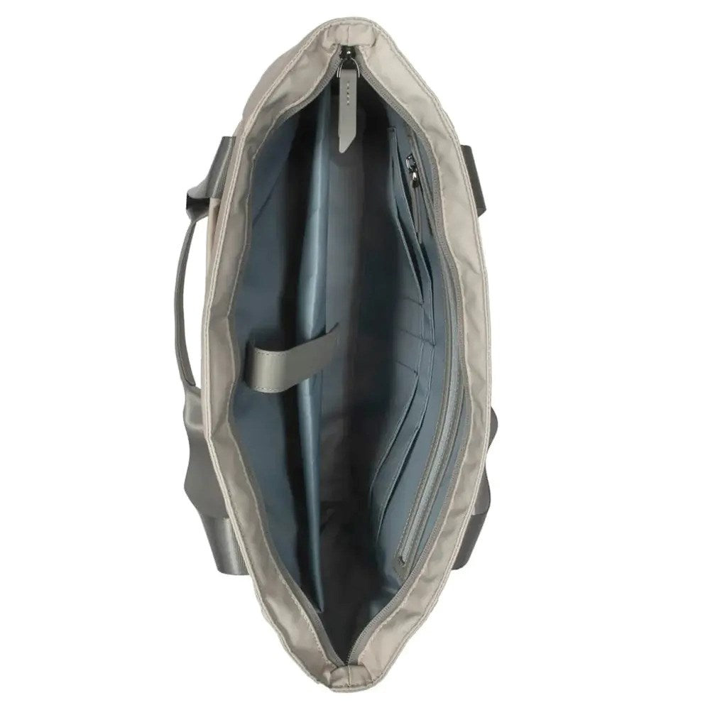 Tasken bæres komfortabelt i de dobbelte skulderhåndtag og er desuden udstyret med en trolley-strop på bagsiden, så den let kan fastgøres til en rullekuffert. Det gør den ideel til både pendlere og rejsende.