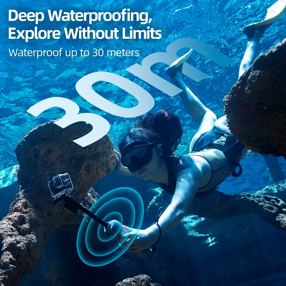 Med IPX68-vandtæthed ned til 30 meter er den perfekt til dykning og snorkling. Den indbyggede Bluetooth-fjernbetjening giver dig fuld kontrol over kameraet under vandet, mens stangen på op til 85 cm gør det let at fange unikke vinkler.