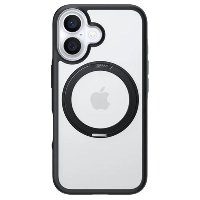 TORRAS - iPhone 16 - Hybrid Plastik Cover m. Roterbar Kickstand Ring - MagSafe Kompatibel - Gennemsigtig / Sort er i restordre og vil blive sendt, så snart det er på lager igen.
