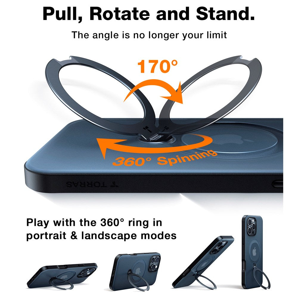 TORRAS - iPhone 16 Pro Max - Hybrid Plastik Cover m. Ståfunktion - MagSafe Kompatibel - Sort er i restordre og vil blive sendt, så snart det er på lager igen.