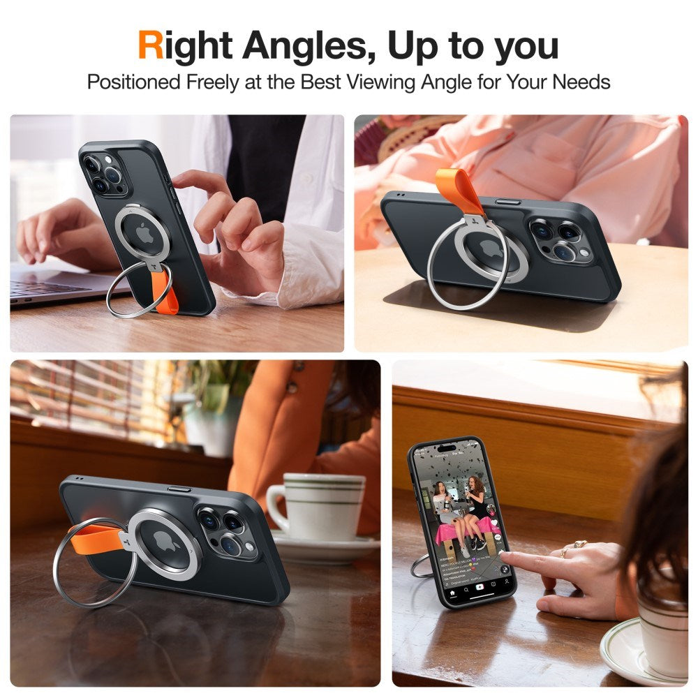 Bred Kompatibilitet: Designet til at fungere med MagSafe-kompatible covers; en metalring til ikke-magnetiske covers medfølger, så du kan nyde kickstand- og greb-funktionalitet uden problemer.