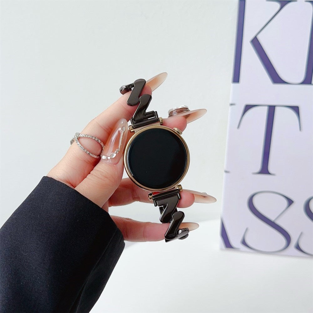 Det elegante bølgedesign tilføjer et moderne og stilfuldt touch, hvilket gør den velegnet til enhver lejlighed, lige fra arbejde til fritidsaktiviteter. Du kan nemt tilpasse længden på remmen ved at fjerne ledene, så den passer perfekt til dit håndled.