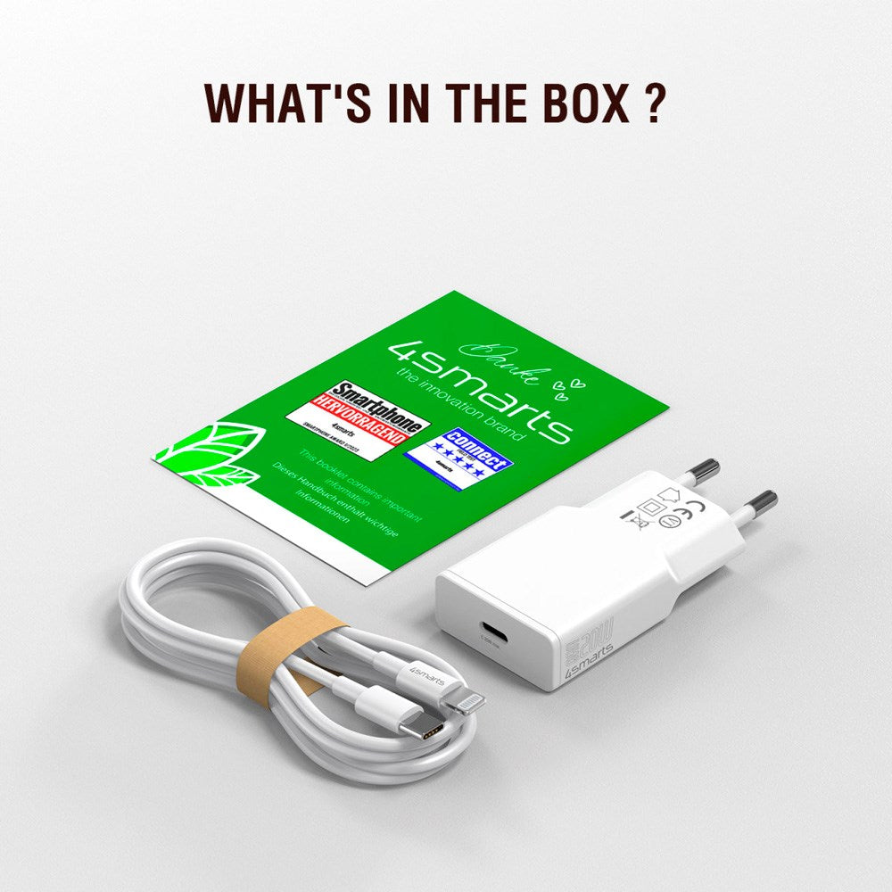 Vægoplader USB-C til Lightning Kabel - 4smarts - 20W / 1.5m - Hvid