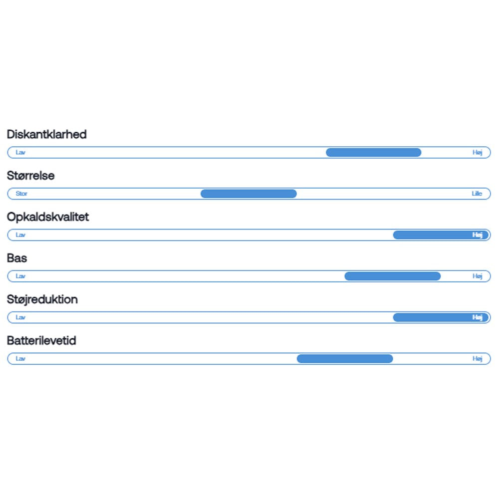 Op til 7.5 timer uden ANC og 30 timer med etui – 6/24 timer med ANC.