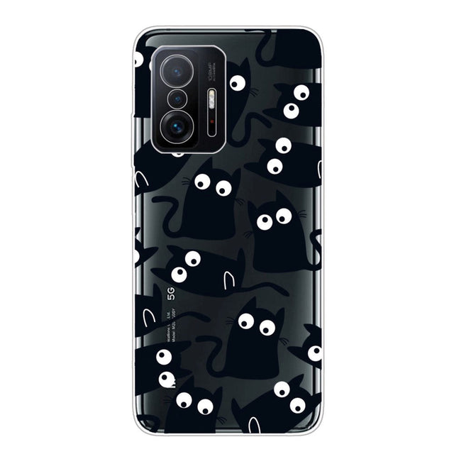 Xiaomi 11T / 11T Pro Fleksibelt Plastik Bagside Cover m. Print - Sorte Katte